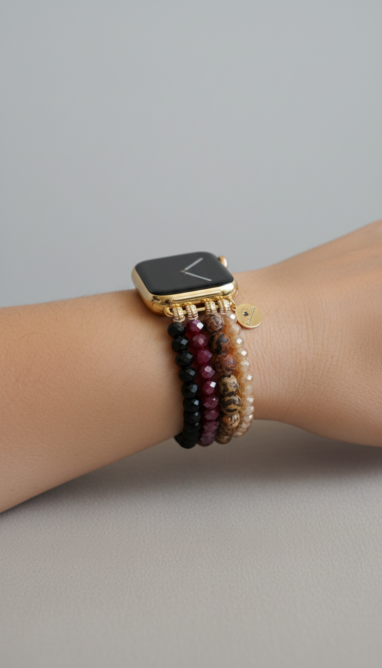 Elevate your Apple Watch with this natural stone beaded bracelet band, blending style and functionality in one chic accessory. Featuring layered strands of faceted and smooth beads in earthy, jewel-toned hues, this watch band adds a boho-luxe touch to your everyday look. Designed for comfort and versatility, it easily transforms your smartwatch into a statement piece.