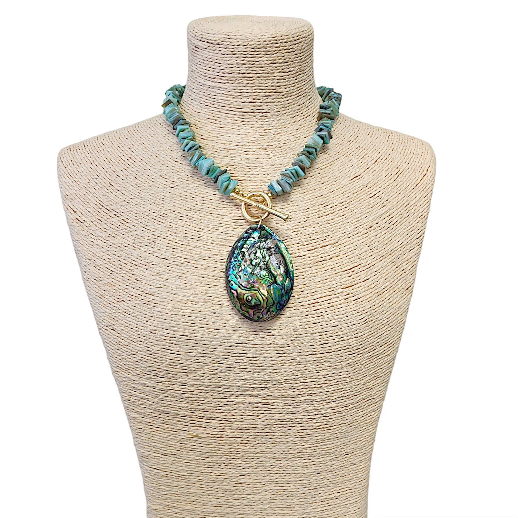 Seashell Necklace Green Necklace Beach Abalone Turquoise